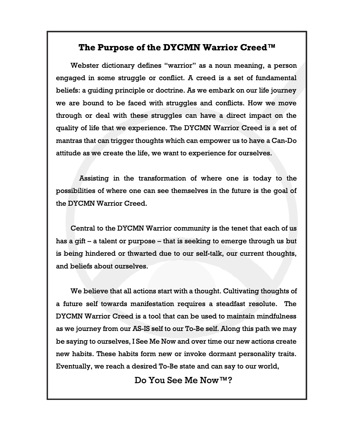The DYCMN Warrior Creed™
